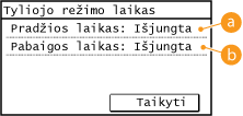 . Taip lengvai sumažinsite veikimo garsą. Taip pat galite nurodyti laiką, kad aparate automatiškai įsijungtų tylusis režimas.