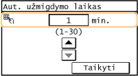 nustatykite laiko tarpą iki aparato automatinio persijungimo į budėjimo režimą