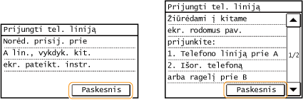 Prijungę telefono liniją bakstelėkite <Paskesnis>.