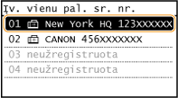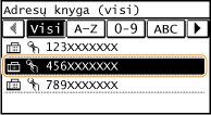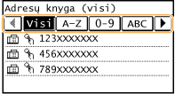 Rodomi visi adresų knygelėje užregistruoti adresatai. Šalia adresatų esančių žymių paaiškinimus žiūrėkite toliau.