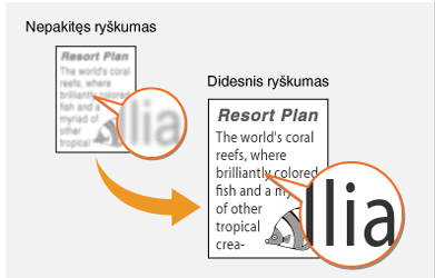 Prieš siusdami galite koreguoti atvaizdo kontrastingumą. Didinkite kontrastingumą, jei norite paryškinti susiliejusį vaizdą ir linijas, arba mažinkite jį, kad patobulintumėte žurnalo nuotraukų išvaizdą.