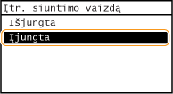 Pasirinkus <Įjungta> arba <Tik kai įvyksta klaida>, į ataskaitą galima įtraukti dalį faksogramos. Bakstelėkite <Įtr. siuntimo vaizdą> ir nustatykite <Įjungta>.