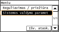 Nuostatos Laikmačio parametrai Bendrieji parametrai*2 Kopijavimo parametrai Fakso parametrai Nuskaitymo parametrai Spausdintuvo param. Reguliavimas / priežiūra Sistemos valdymo parametrai Inicijuoti viską