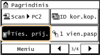 Taip pat galima sukonfigūruoti aparatą, kad būtų išjungtas tiesioginio prijungimo režimas praėjus tam tikram laikotarpiui, kai aparatas perjungiamas į tiesioginio prijungimo režimą. Jeigu <Bel. LAN / ties. prij. (autom. perjung.)> nurodytas kaip tiesioginio prijungimo režimo ryšio būdas, išjungus tiesioginio prijungimo režimą, aparatas automatiškai prisijungia prie belaidžio LAN. Laidinio LAN arba belaidžio LAN pasirinkimas Laikas iki ties. prijungimo nutraukimo