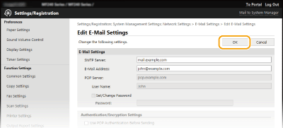 Atsižvelgiant į naudojamą tinklą, gali prireikti pakeisti SMTP arba POP3 prievado parametrą ( Prievadų numerių keitimas). Norėdami gauti daugiau informacijos kreipkitės į interneto paslaugų tiekėją arba tinklo administratorių.