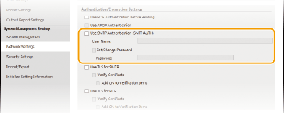 Naudodami „Remote UI“ (Nuotolinio vartotojo sąsaja) prieš siųsdami el. laiškus konfigūruokite išsamius siuntimo parametrus, pvz., POP autentifikavimo parametrus. Reikiamų parametrų kreipkitės į paslaugų teikėją ar tinklo administratorių.