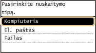 Dokumento nuskaitymo ir įrašymo kompiuteryje seką galima vykdyti tik tuo atveju, kai nuskaitoma naudojant aparatą. Nuskaitydami nurodykite, kuriame kompiuteryje įrašyti dokumentus, nuskaityti dokumentus spalvotai ar nespalvotai, įrašyti dokumentus kaip PDF ar kaip JPEG ir kitus parametrus.