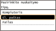 Norėdami siųsti el. laiškus tiesiogiai iš aparato, turite iš anksto atlikti paruošiamuosius darbus, įskaitant el. pašto serverio parametrų nustatymą. Nuskaitymo parametrų konfigūravimas (el. laiško siuntimas)