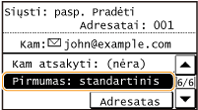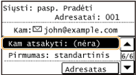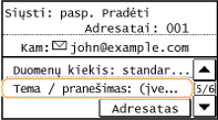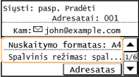 Adresų knygelės naudojimo instrukcijų žr. skyriuje Nurodymas iš adresų knygelės.