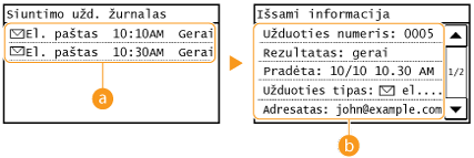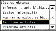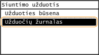 Kai <Rodyti užduočių žurnalą> nustatyta kaip <Išjungta>, išsiųstų dokumentų įrašų tikrinti negalite. Rodyti užduočių žurnalą