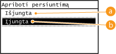 Neleidžiama nurodyti anksčiau perduotų įrašų adresatų. Šio apribojimo naudojimas neleidžia pasirinkti adresatų iš „Send Fax“ (Faksogramos siuntimas), „Scan and Send as E-mail“ (Nuskaitymas ir siuntimas el. paštu) ir „Scan and Save to Shared Folder“ (Nuskaitymas ir įrašymas į bendrai naudojamą aplanką) perdavimo įrašų.