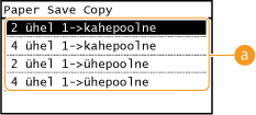 Kahepoolse paljundamise seaded <Paper Save Copy> ei pruugi teatud paberiformaadi ja -tüübi korral olla saadaval. Paber