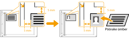 Funktsiooni <ID-kaardi koopia> abil saate kaardi esi- ja tagakülje paljundada samale lehele. See funktsioon on kasulik juhiloa või ID-kaardi paljundamisel.