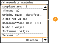 Muutke valitud seade vaikeväärtust