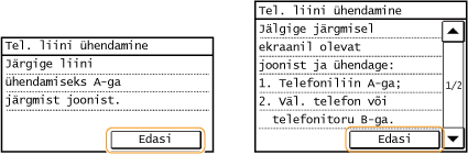 Kui telefoniliin on ühendatud, puudutage klahvi <Edasi>.