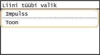 Järgige allpool toodud juhiseid telefoniliini tüübi määramiseks. Kui te pole kindel, mis tüüpi telefoniliini kasutate, pöörduge oma telefoniteenusepakkuja poole. <Liini tüübi valik> ei pruugi kõikides riikides saadaval olla.