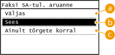 <Faksi SA-tulemuste aruanne> või <E-posti/faili SA-tulemuste aruanne>