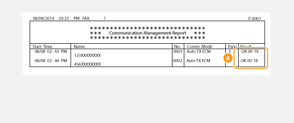 „OK” tähistab edukalt toimunud edastust, „NG” ja kolm numbrit (tõrkekood) tähistavad nurjunud edastust (