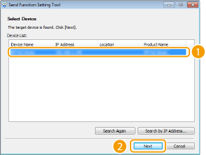 Klõpsake [Search Again]. Probleemi jätkumisel klõpsake klahvi [Search by IP Address], sisestage seadme IP-aadress ja klõpsake nuppu [OK].