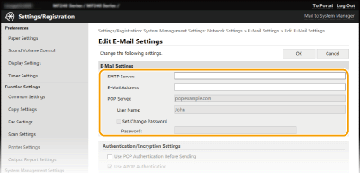 Võite kasutada Remote UI-d (Kaugkasutajaliides) täpsemate saatmissätete konfigureerimiseks, nagu POP-autentimine ja side krüpteerimine enne e-kirja saatmist. Seadeid küsige teenusepakkujalt või võrguadministraatorilt.