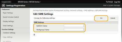 SMB (serveri sõnumiplokk) on protokoll, mida kasutatakse ressursside (nt failid ja printerid) ühiskasutusse andmiseks, kui võrgus on enam kui üks seade. Seade kasutab SMB-d skannitud dokumentide ühiskausta salvestamiseks. Sõltuvalt võrgust peate ehk määrama NetBIOS-i ja töörühma nime.