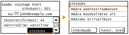 E-kirja saatmiseks otse seadmest peate eelnevalt sooritama ettevalmistused, sealhulgas meiliserveri seadete määramine. Skannimisseadete konfigureerimine (e-postiga saatmiseks)