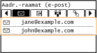 Aadressiraamatu abil saate määrata sihtkoha registreeritud sihtkohtade loendist valimise või adressaadinimega sihtkoha nime järgi otsimisega.