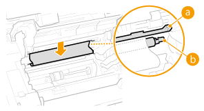 ) toonerikasseti juhikutega ja seejärel lükake toonerikassett täielikult sisse.