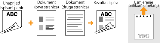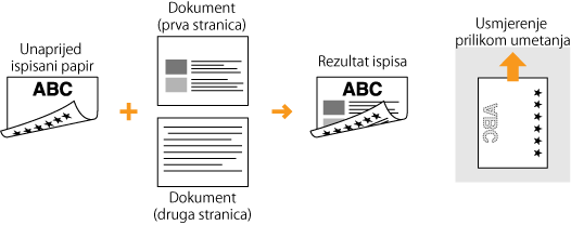 U ovom se odjeljku većim dijelom opisuje umetanje već ispisanog papira s pravilno okrenutom stranom i usmjerenjem. Opis općenitog postupka umetanja papira u ladicu za papir ili utor za ručno ulaganje potražite u odjeljcima Umetanje papira u ladicu za papir ili Umetanje papira u utor za ručno ulaganje.
