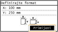 Unesite duljinu strane <Y>, a zatim dodirnite <Primijeni>.