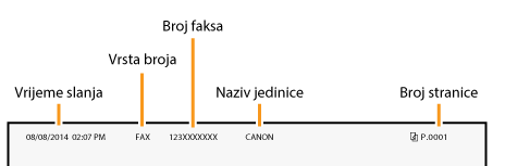 Registrirajte broj faksa i naziv uređaja. Podaci se ispisuju pri vrhu svake stranice koja se šalje iz uređaja.