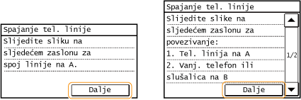 Nakon priključivanja telefonske linije dodirnite <Dalje>.