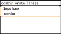 Pratite postupak u nastavku da biste postavili vrstu telefonske linije. Ako niste sigurni koju vrstu telefonske linije koristite, obratite se svojoj telefonskoj tvrtki. <Odabir vrste linije> možda neće biti dostupan, što ovisi o zemlji u kojoj koristite uređaj.