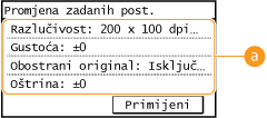 . Ako te zadane postavke promijenite tako da odgovaraju operacijama koje često izvodite, nije potrebno iste postavke konfigurirati pri svakom slanju faksova.