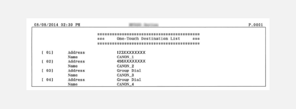 Popis odredišta registriranih u adresaru kao <Kodirano biranje>, <Brzinska tipka> i <Skupno biranje> možete provjeriti ispisom popisa adresara.