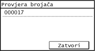 Možete provjeriti ukupan broj stranica za ispise. Osim kopija i ispisa podataka s računala ti ukupni iznosi obuhvaćaju faksove, izvješća i popise.