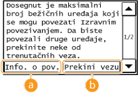 Zaustavlja postupak izravnog povezivanja. Po završetku ispisa, skeniranja ili drugih operacija, dodirnite ovaj gumb za prekid veze.