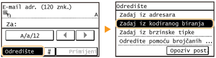 Troznamenkasti brojevi (brojevi za kodirano biranje) dodijeljeni su adresama u adresaru. Možete navesti adresu jednostavnim unosom njezina broja za kodirano biranje.