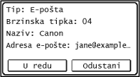 <Da>.Ako ste u 2. koraku naveli grupno biranje, na zaslonu se prikazuje "odredište/-šta". Dodirom stavke <Broj odredišta> prikazuju se odredišta registrirana u grupi.