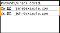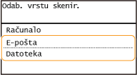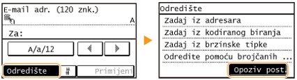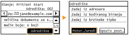 Kao odredište možete odabrati jedno od tri prethodna odredišta. Kada definirate prethodno korišteno odredište, uređaj postavlja iste postavke skeniranja (na primjer gustoću) koje ste koristili pri zadnjem slanju dokumenata na to odredište.