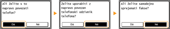 Izberite način sprejema, tako da tapnete <Da> ali <Ne>.