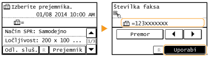 Tapnite <Premor>, da na konec številke faksa po potrebi vstavite premor.