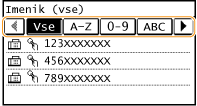 Prikaže prejemnike, katerih prve črke imen se ujemajo z izbranim zavihkom.