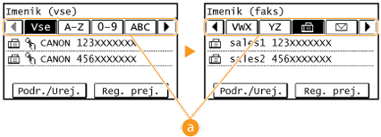 Z imenikom lahko izbirate prejemnike tako, da jih izberete s seznama registriranih prejemnikov ali iščete po imenu prejemnika.