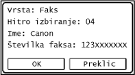 Pred uporabo hitrega izbiranja z eno tipko morate registrirati prejemnike.