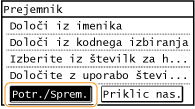 Če je možnost <Omejitev pon. pošiljanja iz dnevnika> nastavljena na <Vključeno>, te funkcije ne morete uporabljati. Onemogočanje uporabe uporabljenih prejemnikov