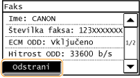 / , da preklopite med navedenimi prejemniki. Izberite prejemnika, ki ga želite izbrisati, in pritisnite . |