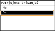 Omogoča tiskanje poročil o rezultatu SPR vsakič, ko se v pomnilnik shrani dokument. Za tiskanje poročil tapnite <Vključeno>. Poleg tega morate možnost <Poročilo o rezultatu SPR> nastaviti na <Vključeno>.