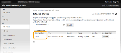 Prejete fakse lahko shranite v pomnilnik in jih natisnete pozneje. Ta funkcija lahko prepreči, da bi nepooblaščene osebe nenamerno videle zaupne dokumente. Prejete dokumente si lahko predogledate tudi z oddaljenim uporabniškim vmesnikom.