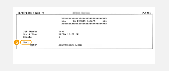 Za e-pošto vsebuje poročilo rezultat prenosa med napravo in e-poštnim strežnikom, ne med napravo in naslovom prejemnika. Tudi če prenos ne uspe, se trimestna koda napake ne bo natisnila. Če želite preveriti kodo napake, natisnite poročilo o upravljanju komunikacij (